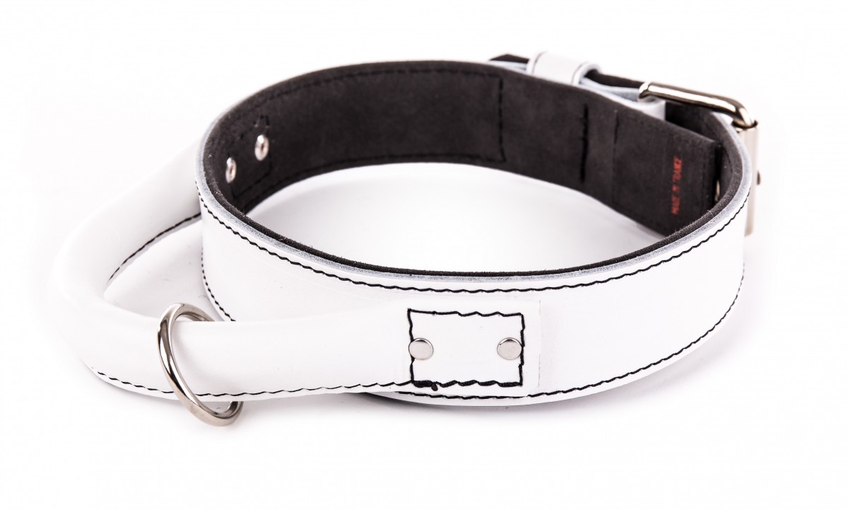 Dog collar for intervention - white leather - 55 à 60 cm x 4,3 cm