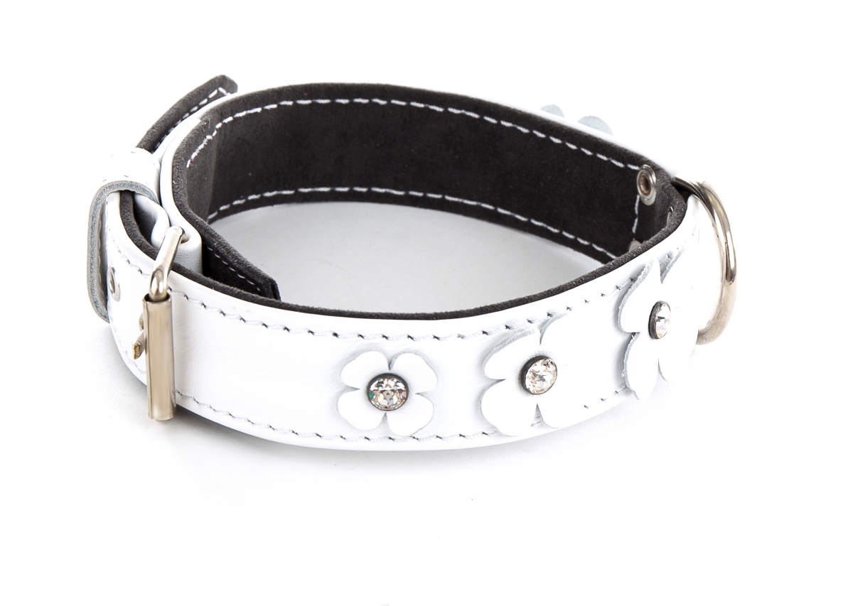 White leather collar for dog - Clover leather right - W 31mm L 45cm