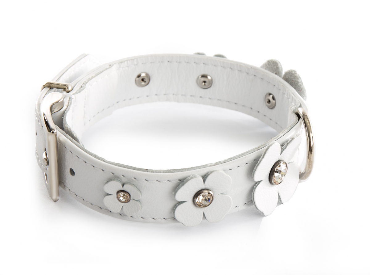 White leather collar for dog - Clover leather right - W 20mm L 35cm