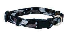 Width 20mm length 32-52 cm. very strong nylon webbing. Strong resistance, up to 1000kg. Acetal buckles and Buckles to ensure high resistance to breakage. Drawings for exclusive woven design on the strap with tinted son in the mass. color retention to sunlight and washing at 30 ° C (do not rub). Buckles steel with nickel finish. Rembordées straps, no sharp edges in contact with the animal. Lightweight and adapted to the morphology of the animal. quick release buckle. Made in France.