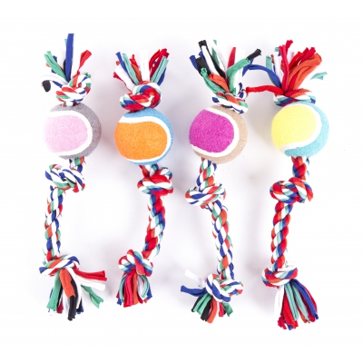 • Jouet pour petits chien et chiots -Lot de 4 cordes + balle de tennis