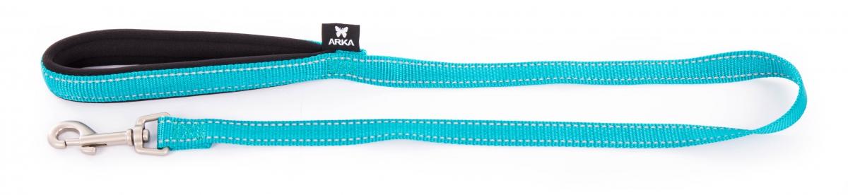 Nylon leash Neo+ with neoprene lining comfort handle, reflective stitching, snap buckle