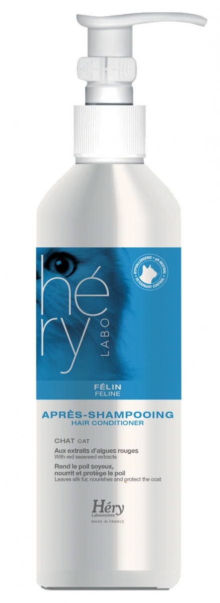 Cat hair conditioner Hery. Leaves silk fur, nourishes and protet the coat. With red seaweed extracts.