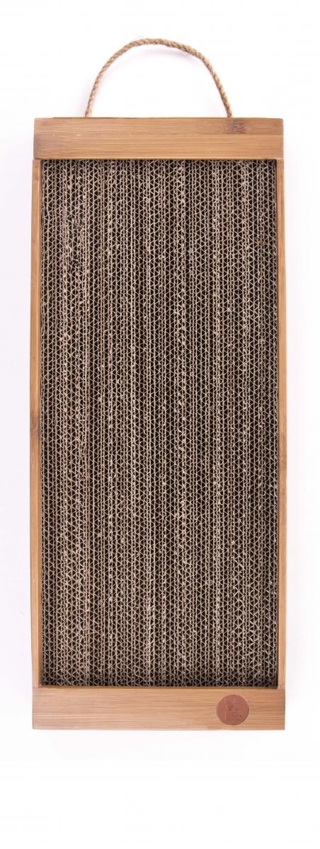 Flexible scratcher to hang on the wall or a door handle for vertical scratches, to be laid on the ground for horizontal scratches. Consisting of a reversible refill in cardboard or coconut. Recommended for small interiors.