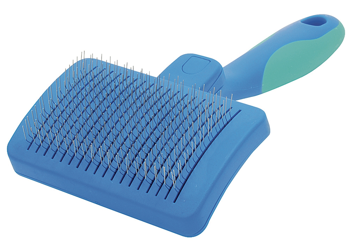 • To clean your slicker, press the button on the back to remove all of the hair from the pins.