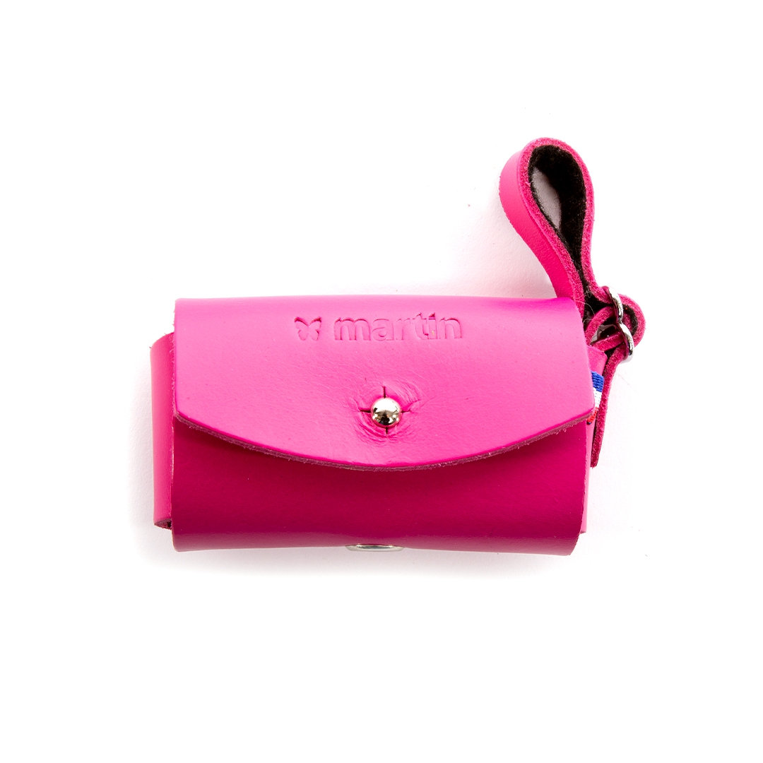 To slip into your handbag or hang from a lead or collar using the felt-lined loop on the side. Supple cowhide leather, clean-cut and riveted, flag-stitched label, felt-lined loop. Reinforced opening. For small rolls