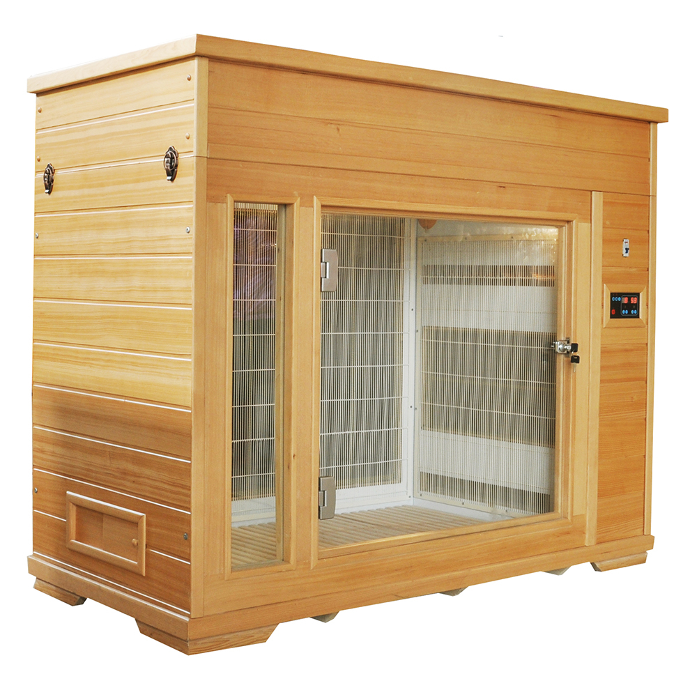 Unlike traditional forced-air dryers, this professional dog drying cabinet uses carbon infrared panels, similar to infrared sauna technology.