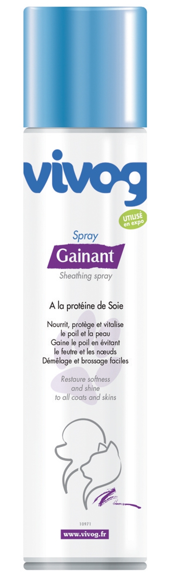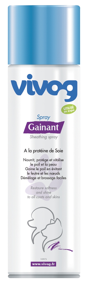 The Vivog Mink spray, enriched with vitamin F and mink oil, nourishes, protects and vitalizes fur and skin. It restores radiance and shine to the coat and promotes hair growth.