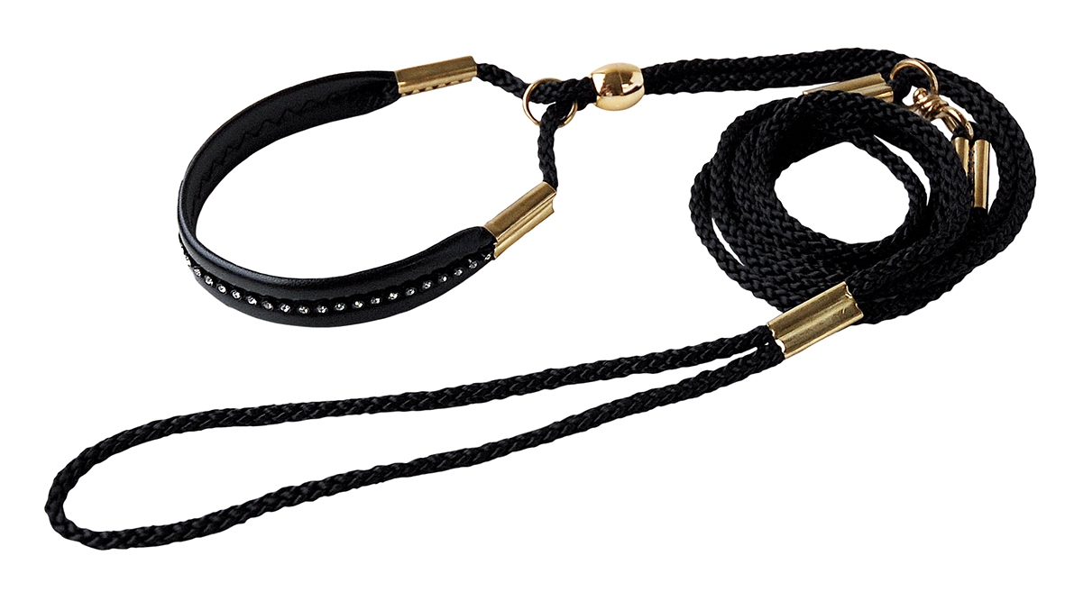 Laisse de présentation en rayonne (viscose) noir avec strass