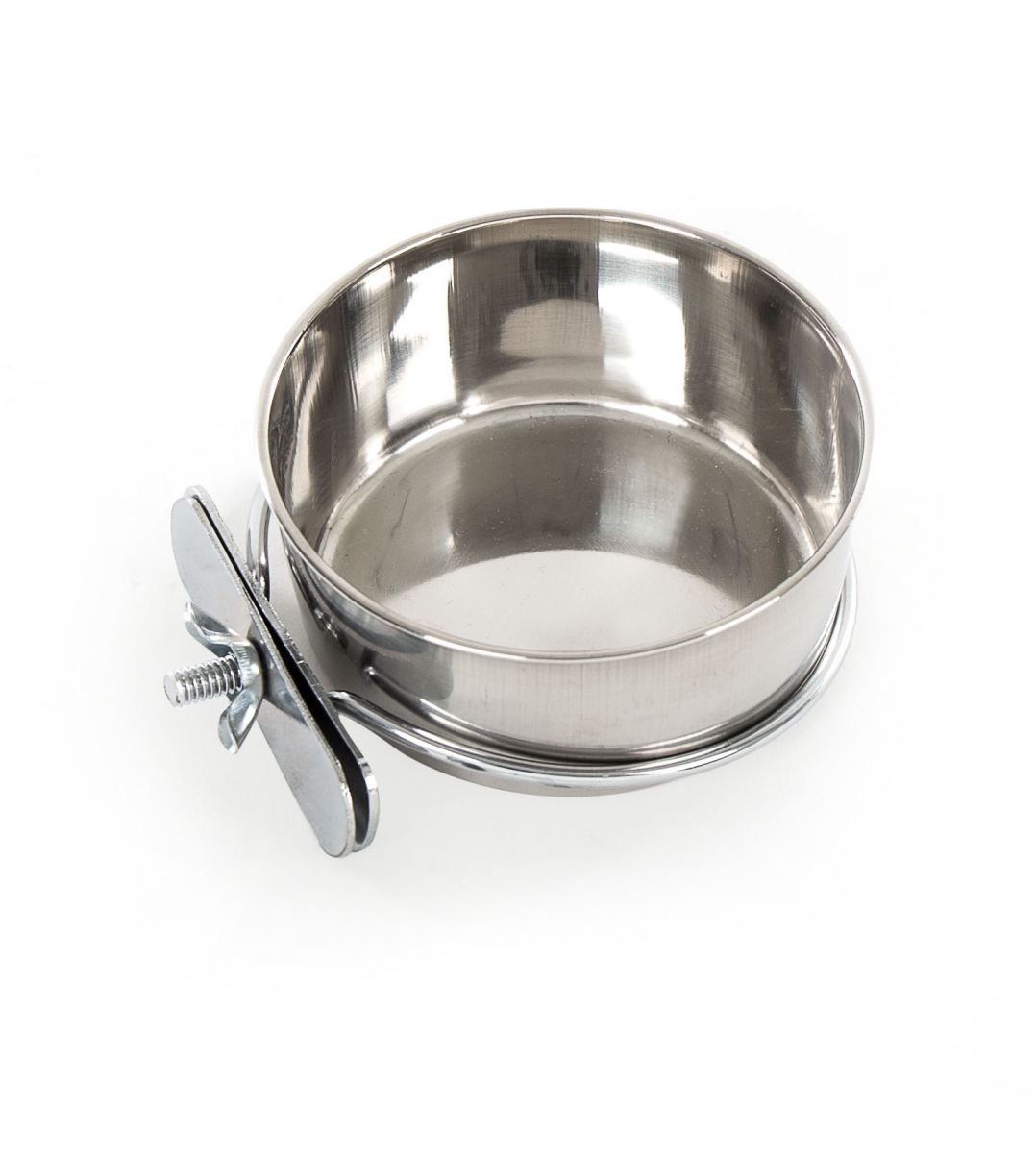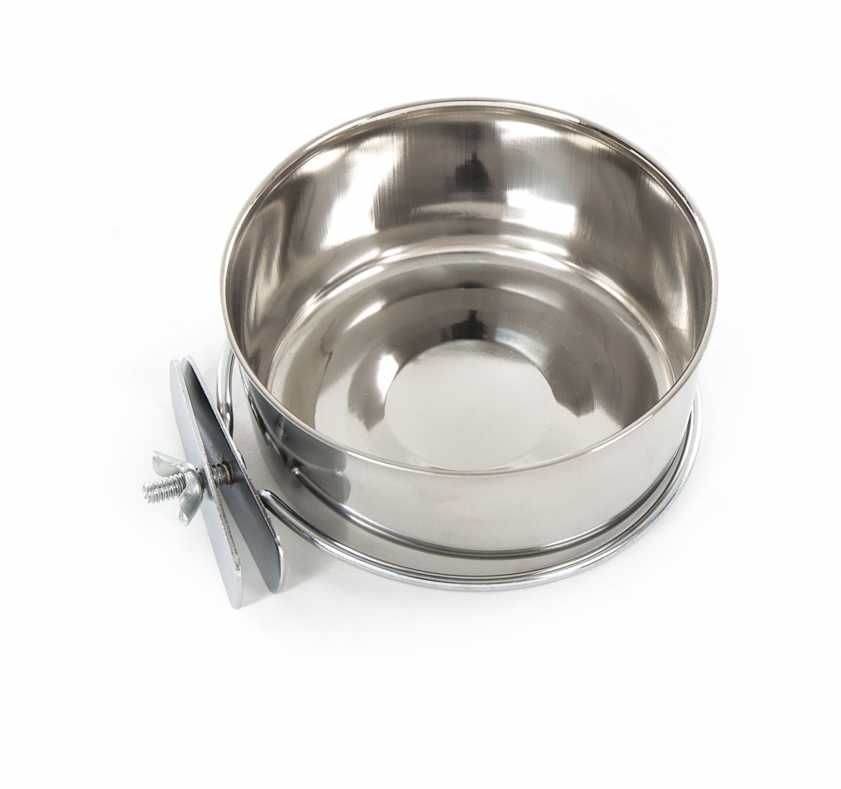 En inox, accroche en métal, très résistant, adapté pour les cages de transport métalliques