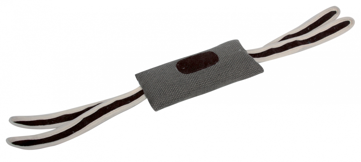 Jouet traction composé d'une base en tissu et de 4 lanières tissu. Dimensions +/- 62 cm