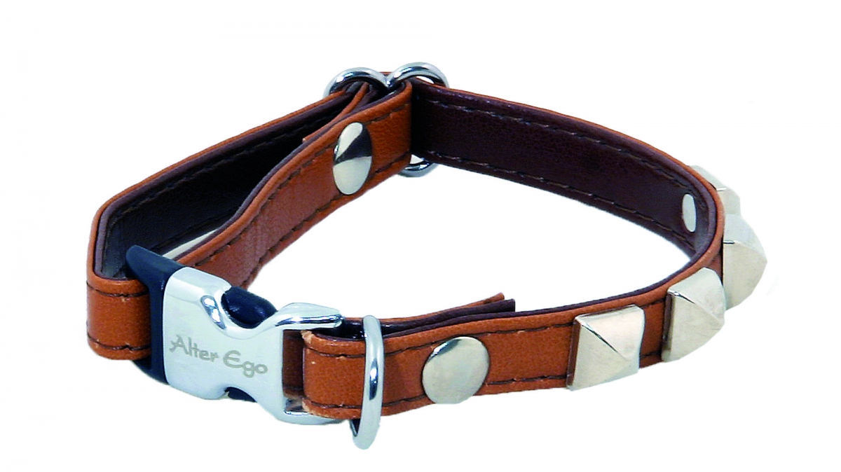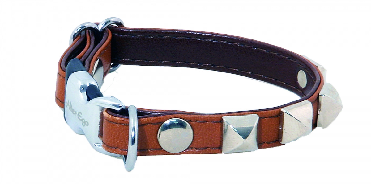 Croûte d’agneau souple avec doublure en simili cuir. Assemblage riveté. Orné de rivets pyramide. Bouclerie en métal. Collier réglable. Spécialement conçu pour les petits chiens (type Yorkshire, Chihuahua, Cavalier King Charles, Caniche nain, Pinscher nain...).