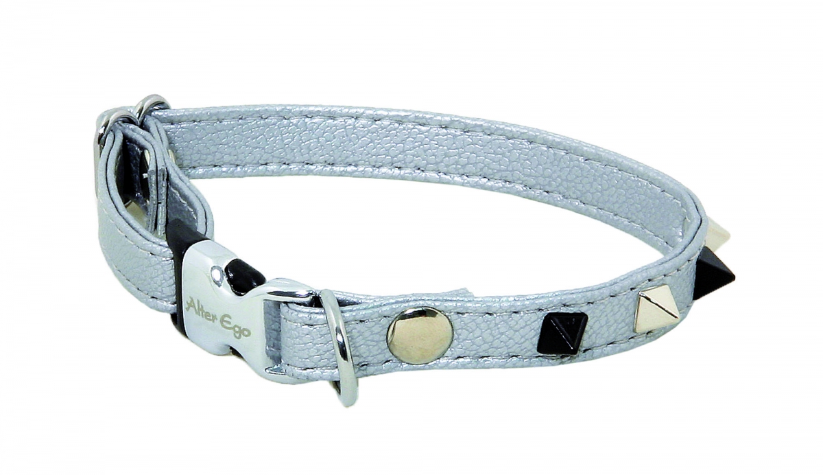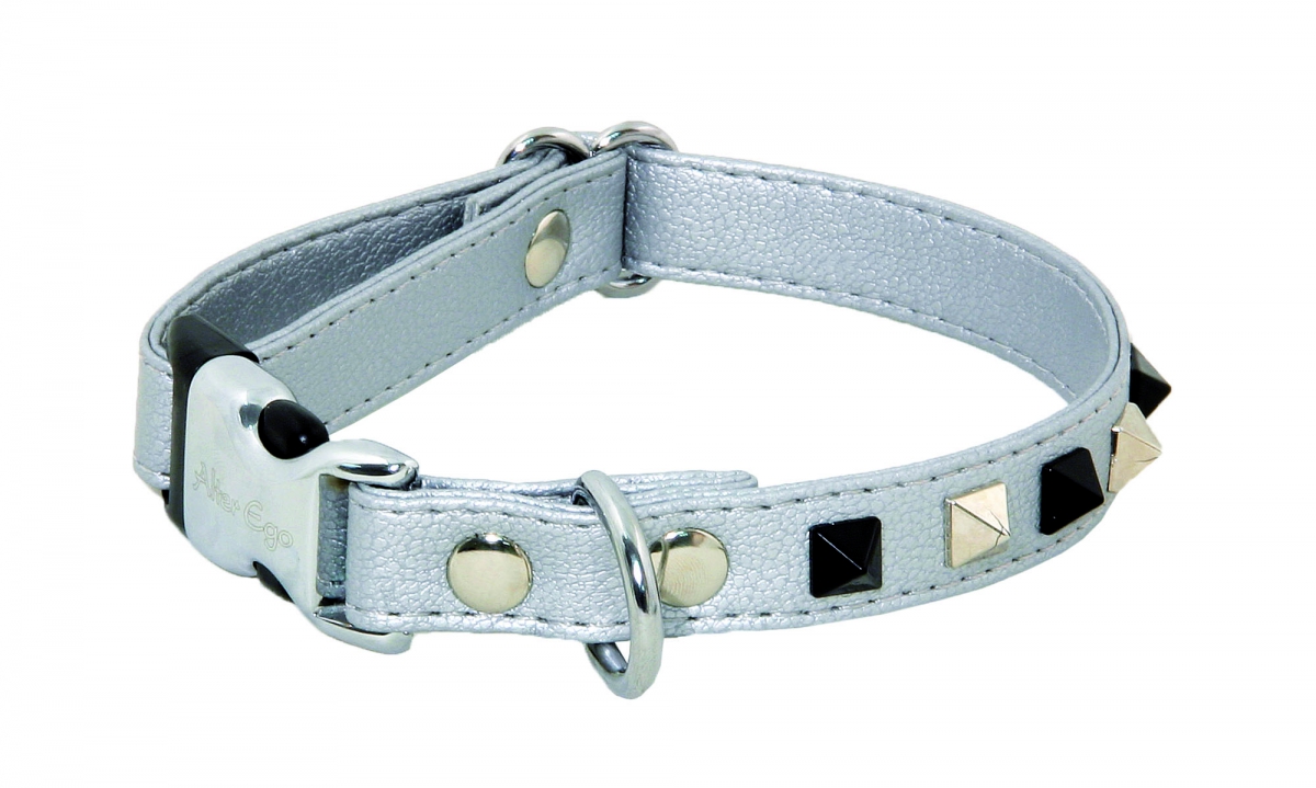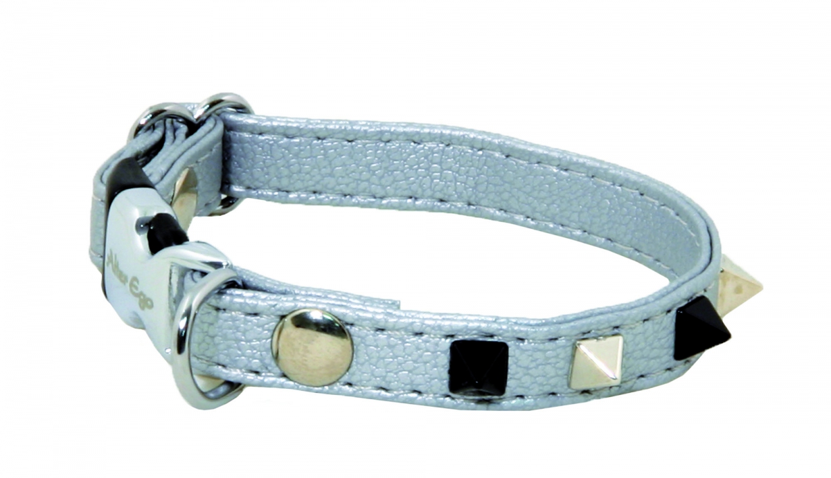 Simili cuir avec doublure en simili cuir. Assemblage riveté. Orné de rivets pyramide. Bouclerie en métal. Collier réglable. Spécialement conçu pour les petits chiens (type Yorkshire, Chihuahua, Cavalier King Charles, Caniche nain, Pinscher nain...)