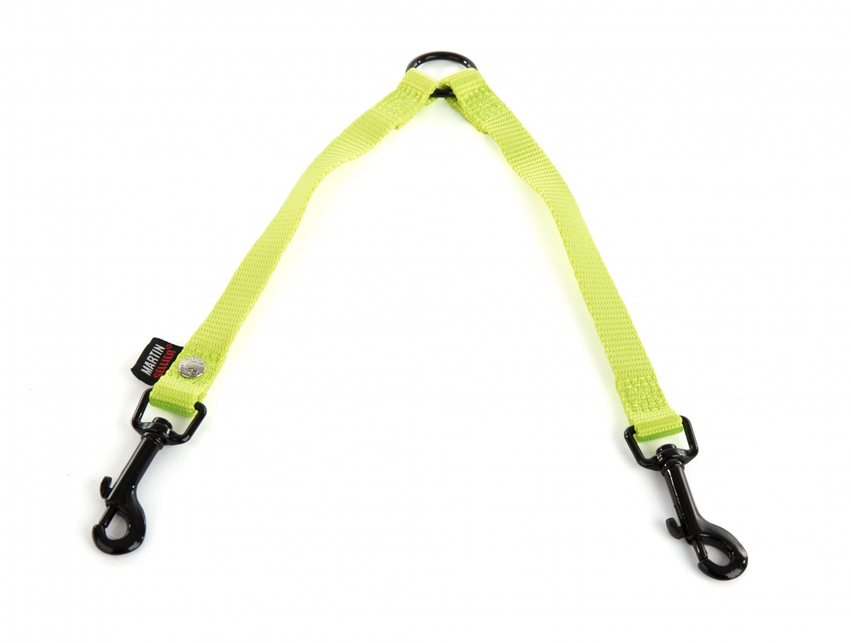 Accouple en nylon. Accessoires et mousquetons carabine laqué noir. Dimensions : 16mm x 50cm (= 2 x 25cm). Sangle garantie 10 ans.