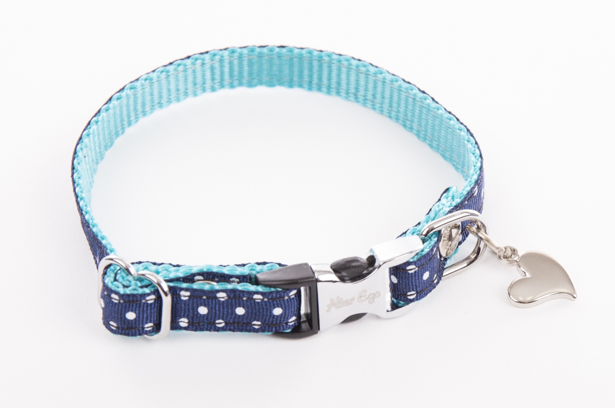 Collier pour chien nylon pois bleu - 1 x 17 à 27 cm