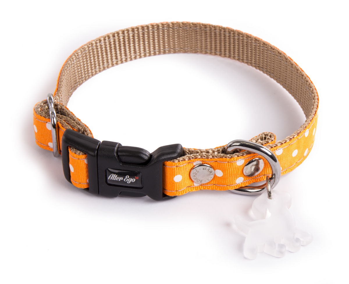 Collier pour chien nylon pois orange - 1,5 x 23 à 33 cm