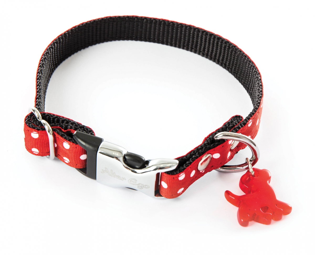 Collier pour chien nylon pois rouge - 1,5 x 23 à 33 cm