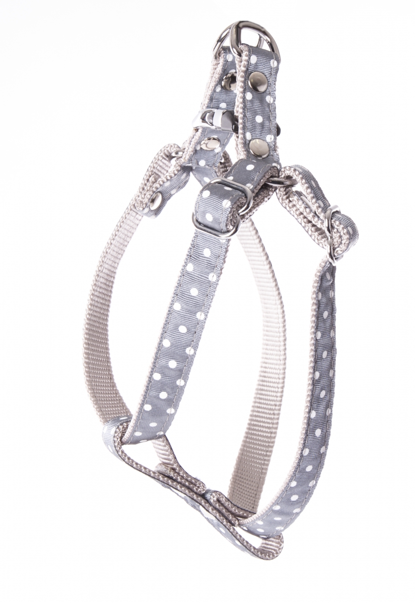 Harnais nylon pois gris - largeur 10 mm - Longueur de 25 à 35 cm