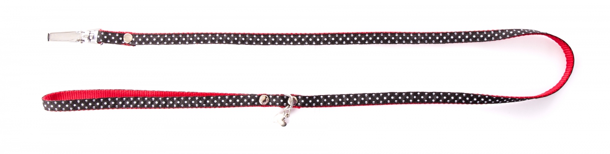 Laisse pour chien / chat - nylon pois noir - 1 x 100 cm