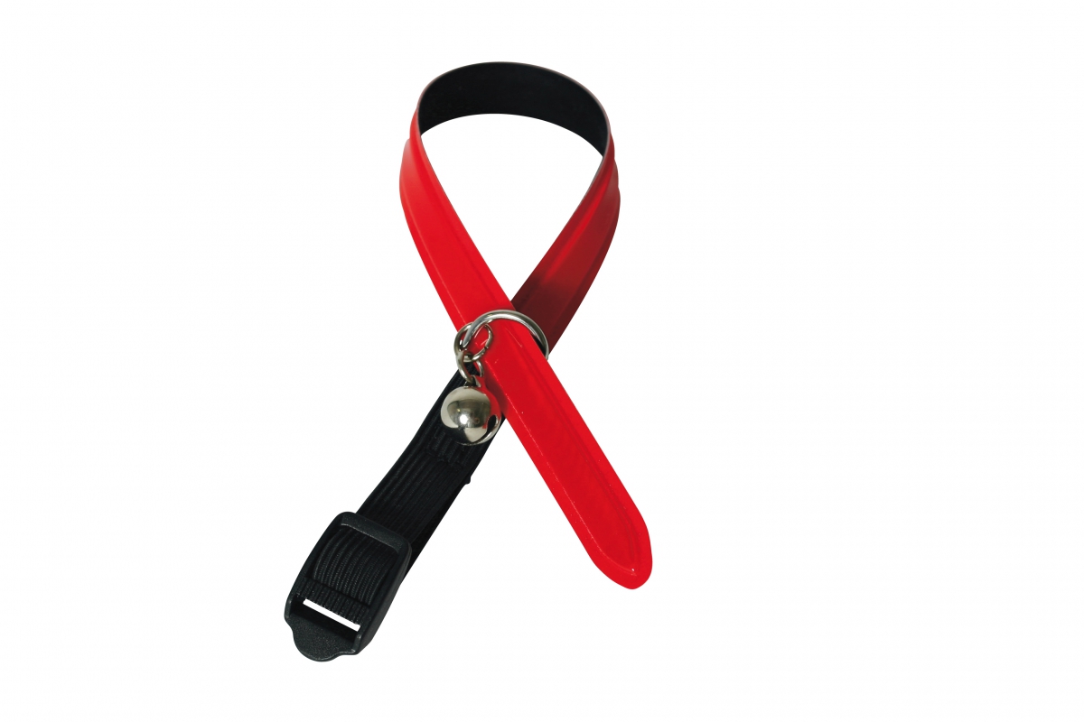 Collier réflechissant la lumière. Avec grelot et élastique de sécurité. Dimensions : 12mm x 30cm.