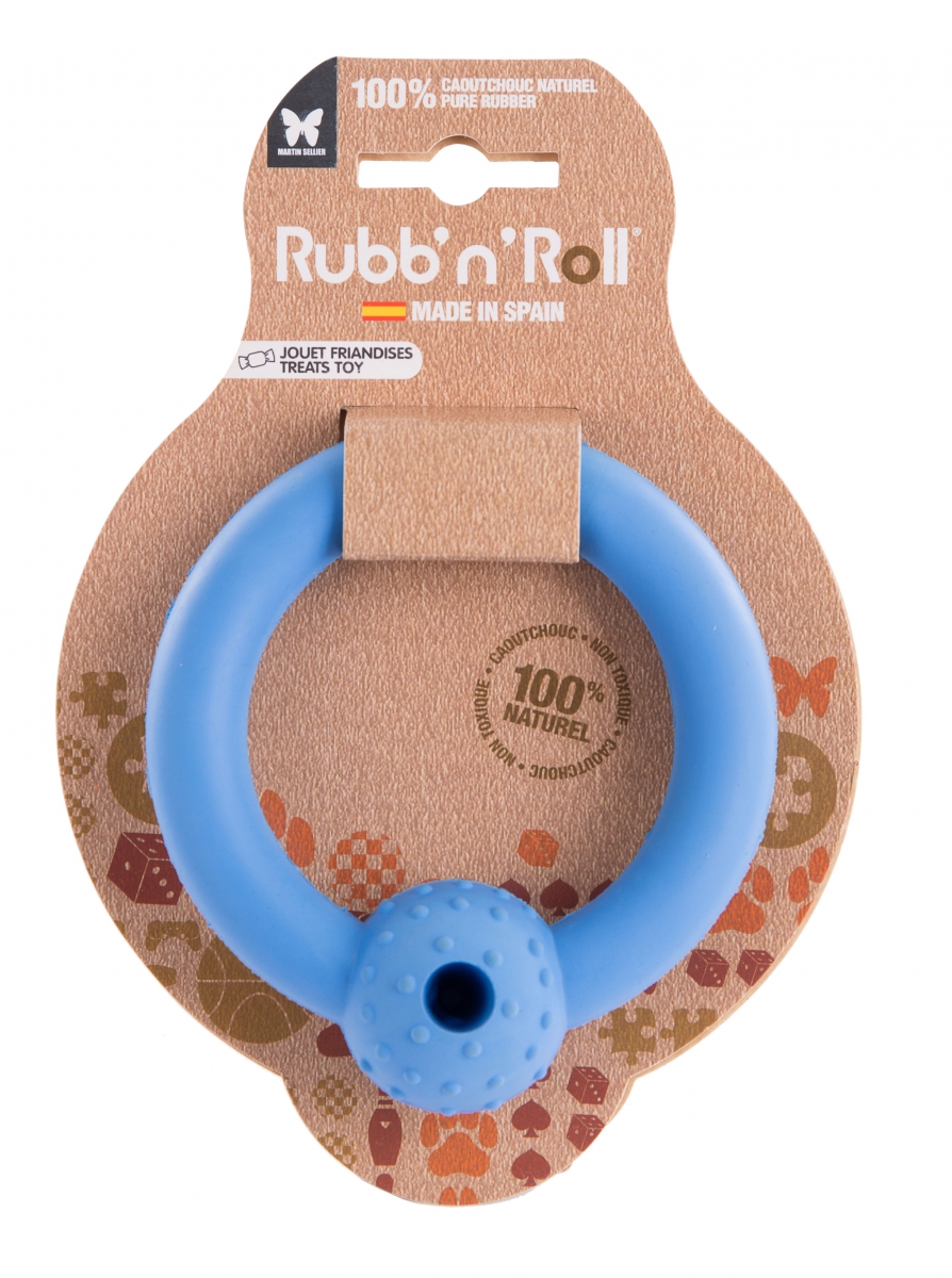Jouet Anneau pour chien spécifique pour insérer des friandises. Satisfait le besoin de jouer et de mâcher de l'animal. En caoutchouc 100% naturel provenant de l'Hévéa. Evite les risques d'occlusion intestinale. Biodégradable et écologique.