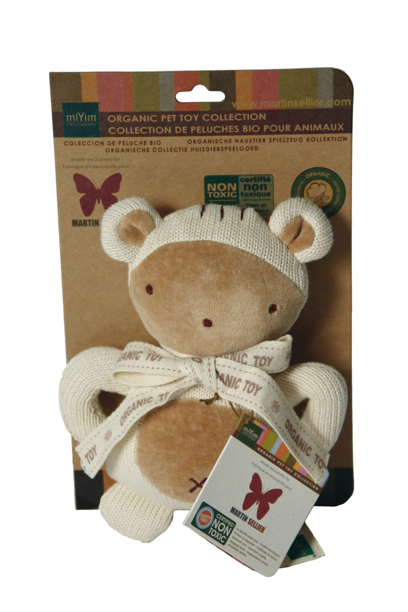 Peluches avec 1 zone sonore, en coton biologique, teintés avec des colorants naturels, certifiés CE, lavable en machine à cycle doux.