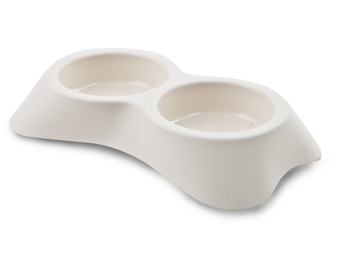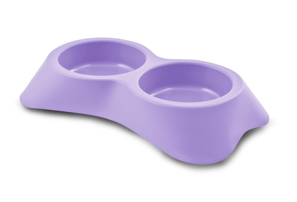 Gamelle double en plastique. Simple et rapide à nettoyer. Solide. Bords antidérapants.