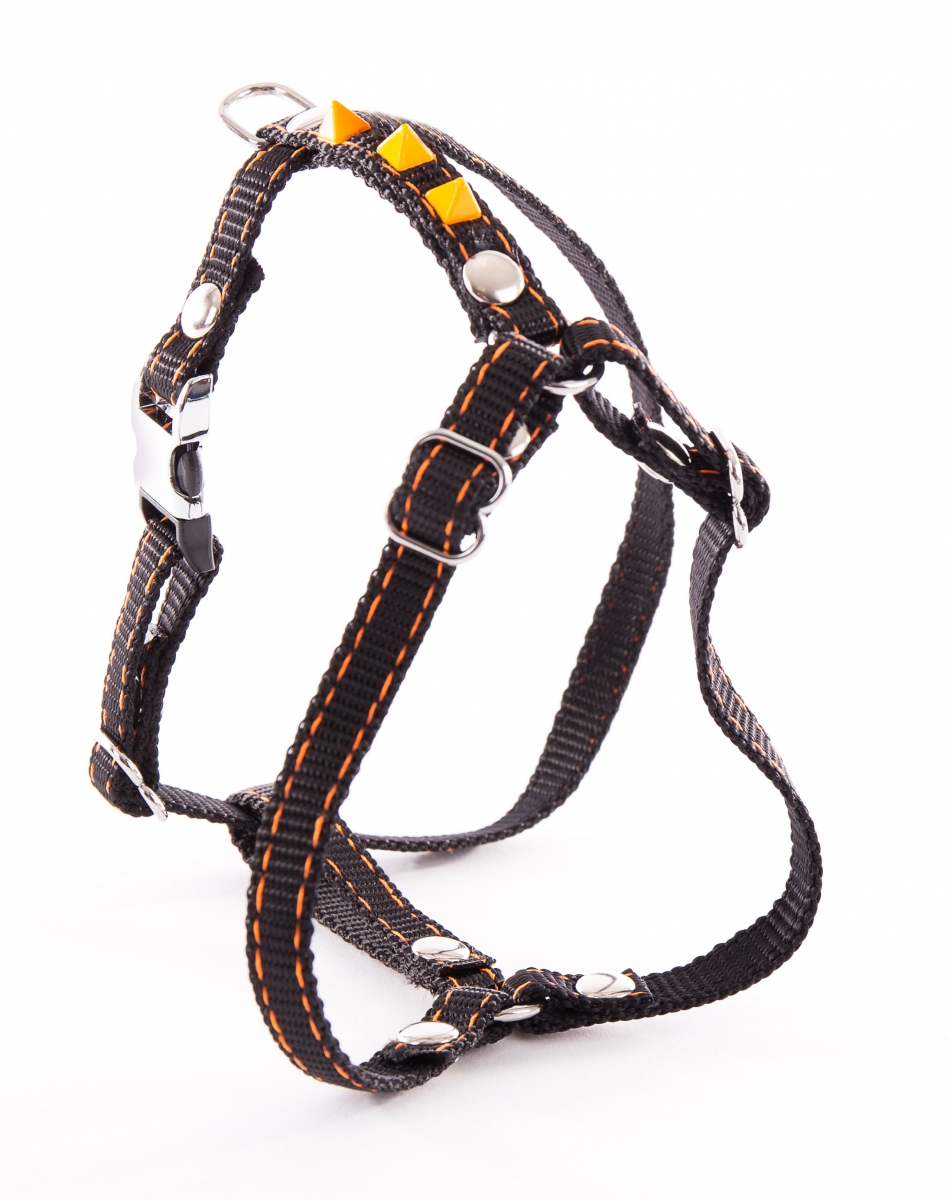 Harnais nylon Fluo Black noir & orange - Taille XS - largeur 10 mm - Longueur de 30 à 40 cm