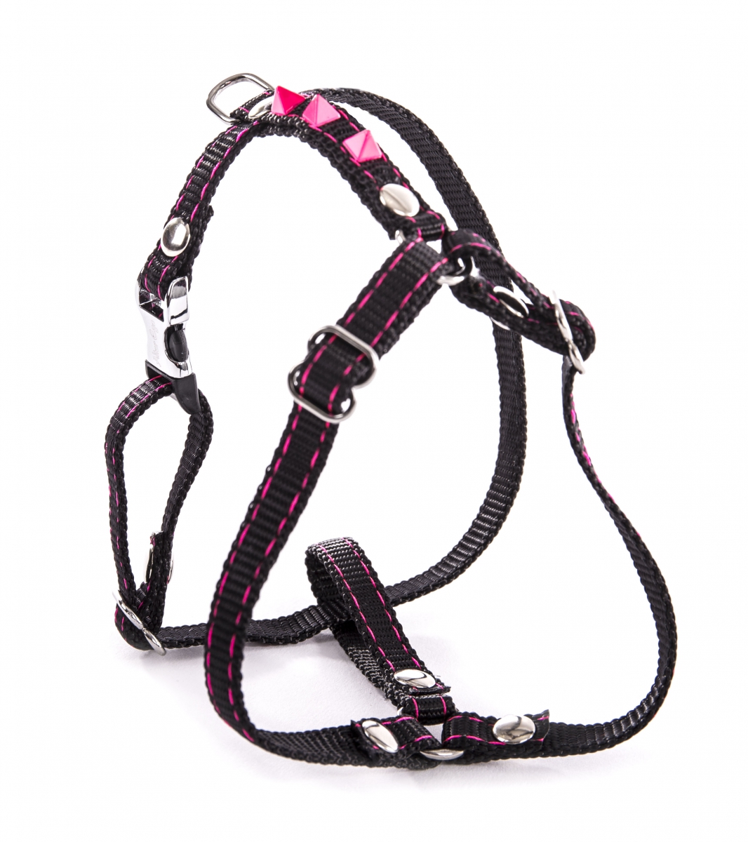 Harnais en nylon Fluo Black noir & rose Pyramide Fluo