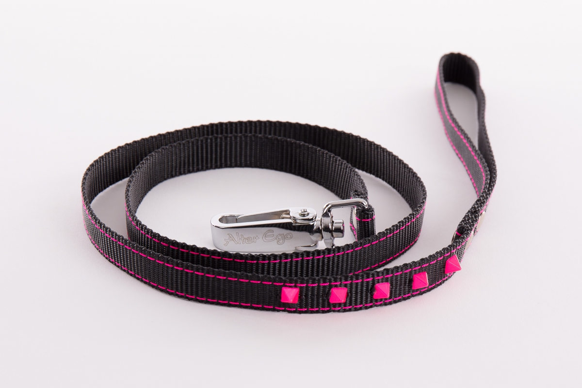 Laisse en nylon Fluo Coloris Noir & Rose pour chien