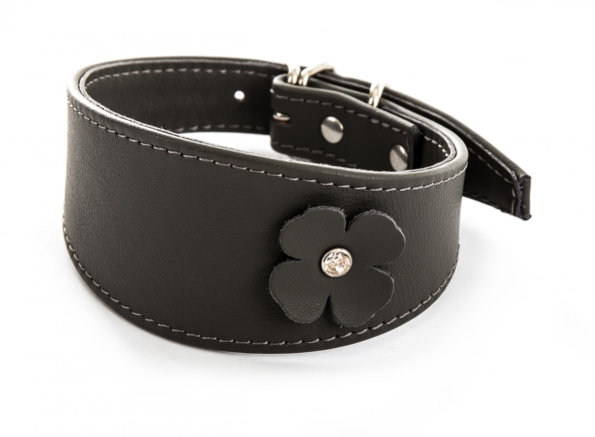 Collier en cuir gris avec Trèfles peausserie pour Whippet / Lévrier