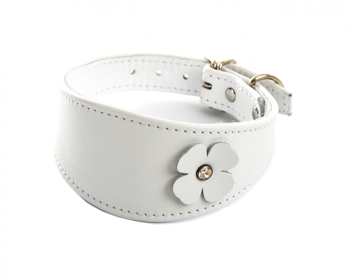 Collier en cuir blanc avec Trèfles peausserie pour Whippet / Lévrier