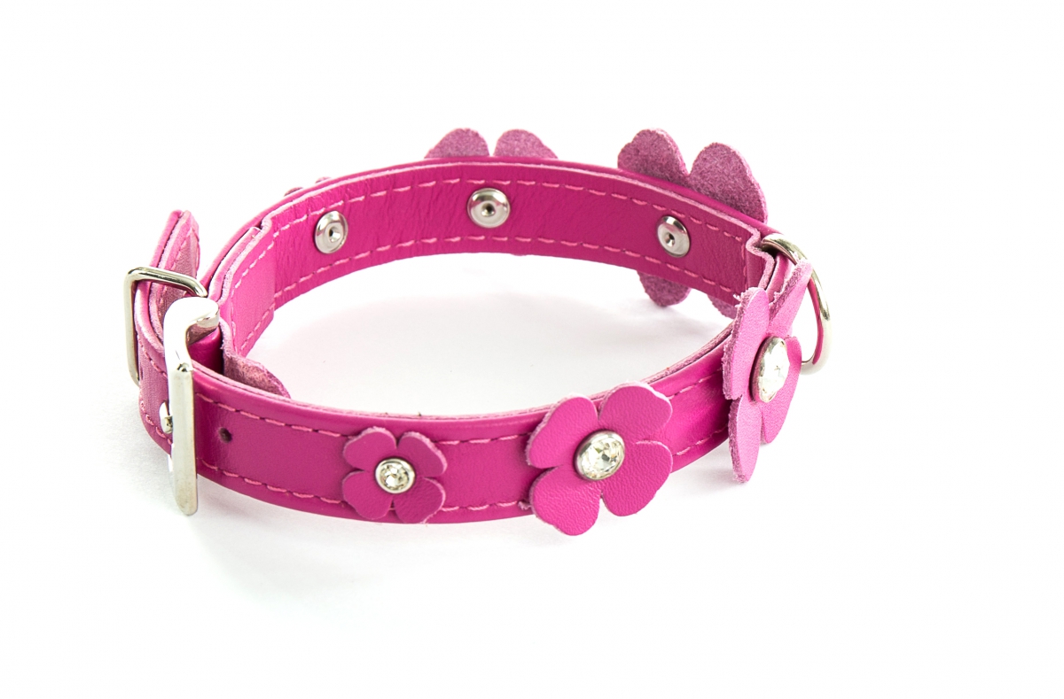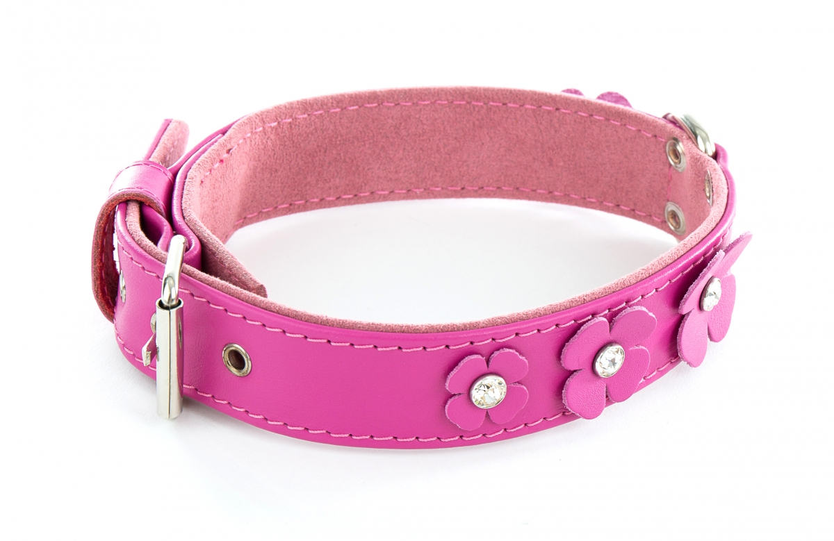 Collier cuir droit fuchsia pour chien - cuir fantaisie trèfle peausserie