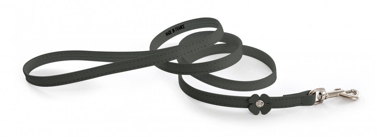 Laisse cuir gris pour chien - cuir fantaisie trèfle peausserie - aisie trèfle peausserie - larg 10mm Long 100cm