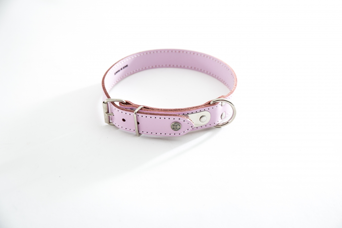 Collier en cuir rose pour chien - cuir classique surpiqué avec plaque - larg 12mm Long 33cm