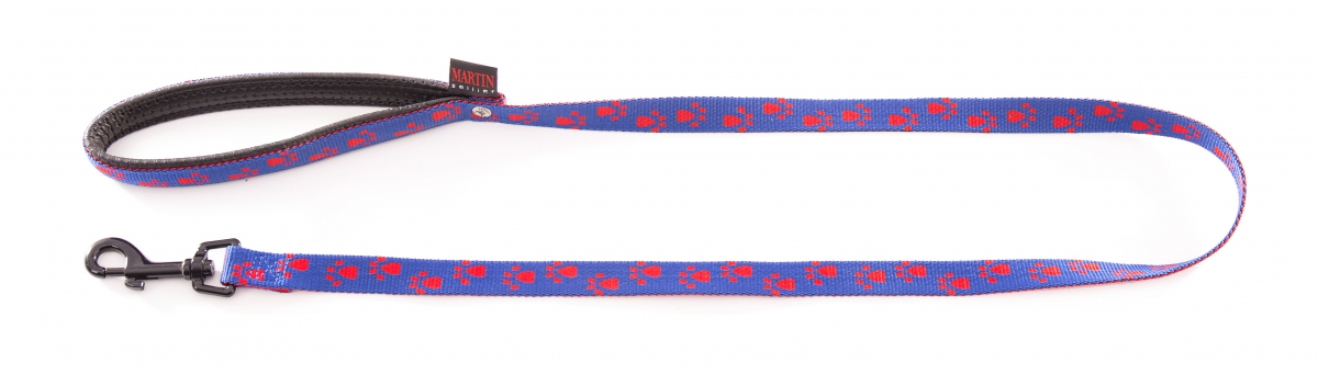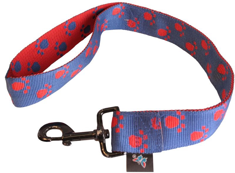 Laisse pour chien bleu rouge - pattes originales - larg 25mm L 120cm