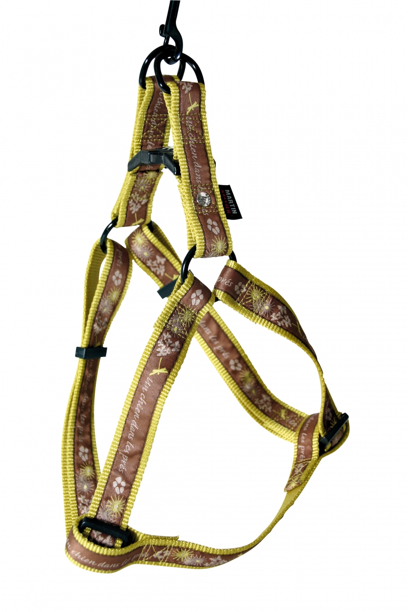 Harnais jaune - un chien dans les prés - larg 16mm Long 35 à 50 cm