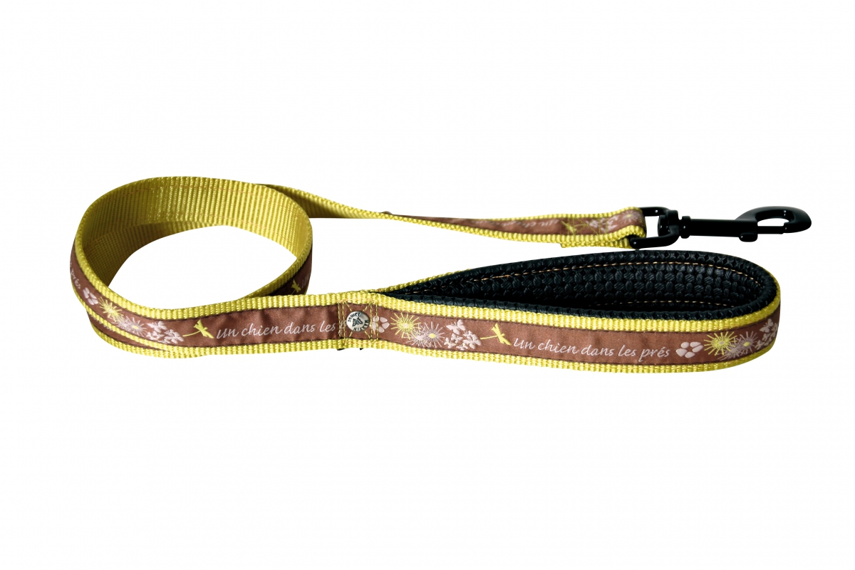 Laisse en nylon jaune et galon 1 m Collection Un chien dans les prés