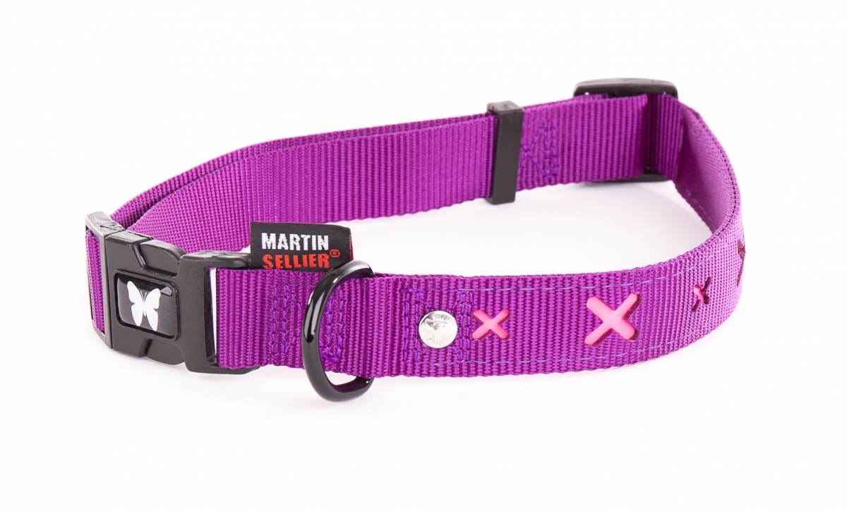 Collier pour chien - croix rose - larg 16mm Long 30 à 45cm