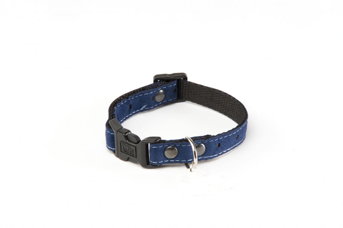 Taille S - largeur 15 mm Longueur 25 à 40cm. Ruban sergé monté sur sangle. Rivet double tête. Boucle auto-bloquante en PVC. Pendentif. Fabriqué en France
