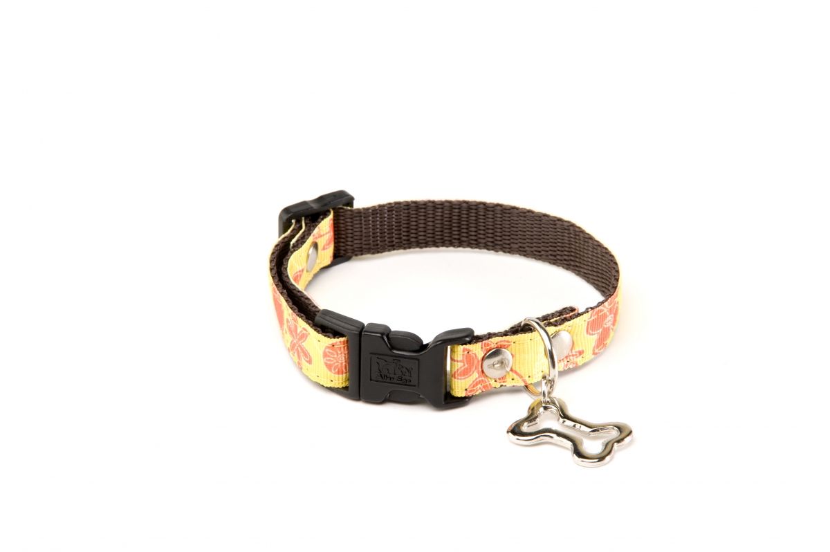 Collier pour chien - Floralies jaune - S - larg 15mm Long 25 à 40cm