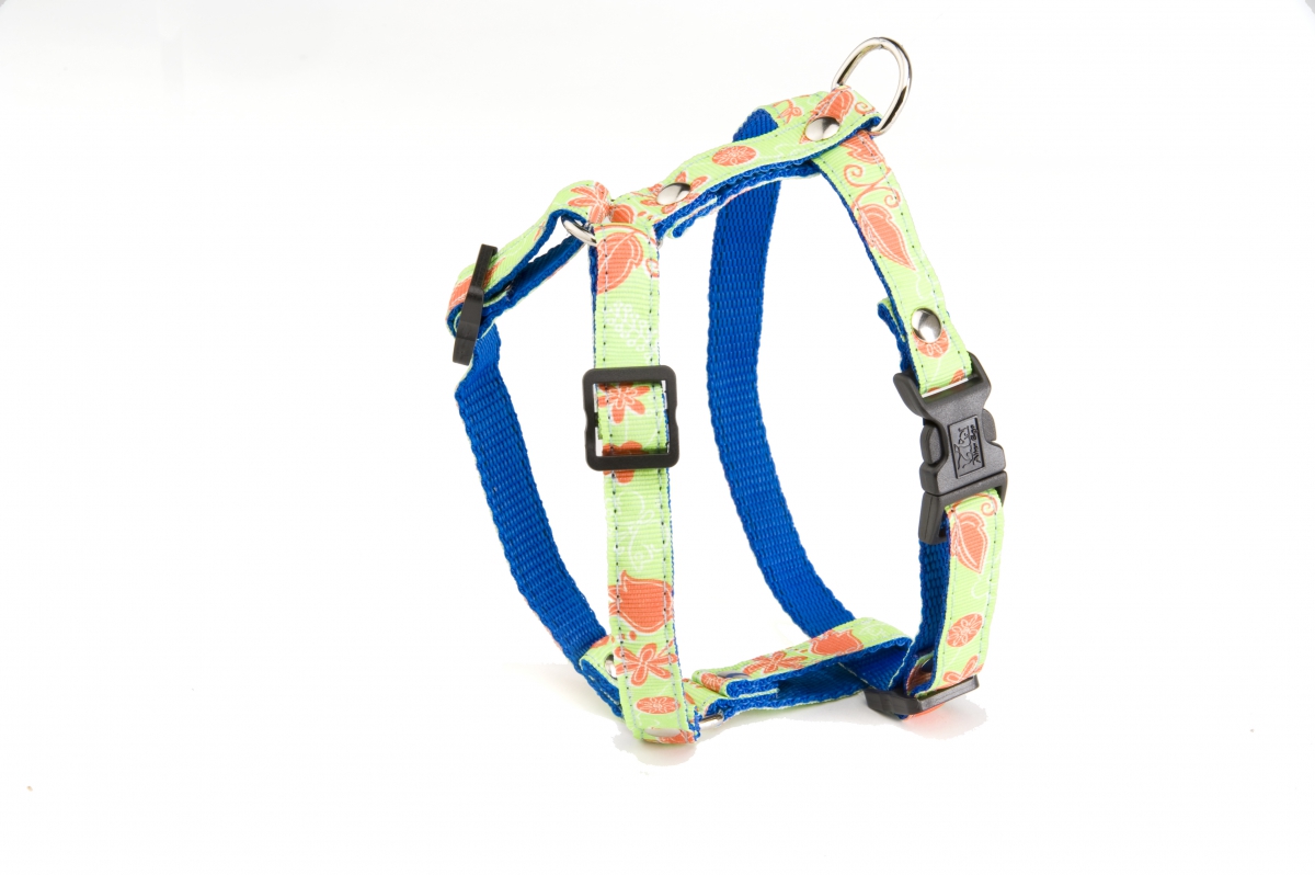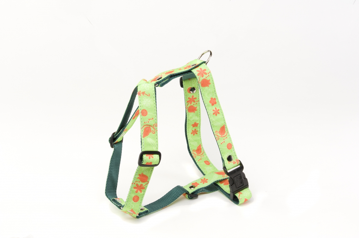 Harnais pour chien - Floralies vert - S larg 15mm Long 30 à 45cm