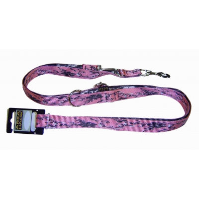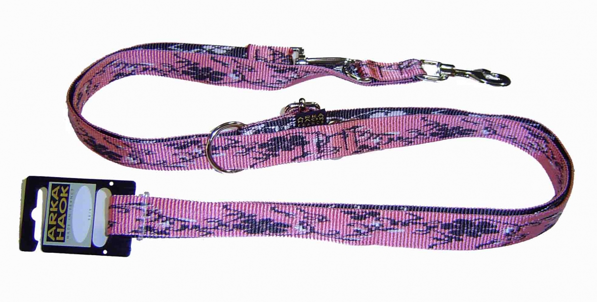 Laisse 3 positions pour chien. Position A : Laisse 1 chien (2 longueurs possibles court ou long). Position B : Laisse 2 chiens. Position C : Laisse autour du maitre - autourd'un poteau.