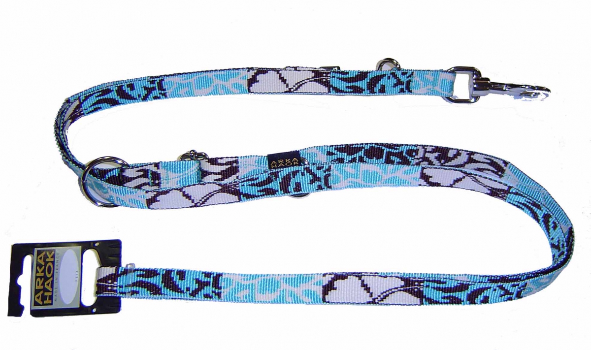 Laisse 3 positions pour chien. Position A : Laisse 1 chien (2 longueurs possibles court ou long). Position B : Laisse 2 chiens. Position C : Laisse autour du maitre - autourd'un poteau.