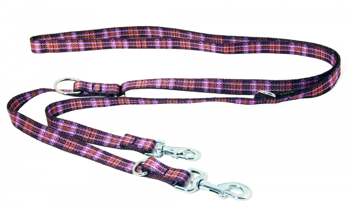 Laisse 3 positions pour chien. Position A : Laisse 1 chien (2 longueurs possibles court ou long). Position B : Laisse 2 chiens. Position C : Laisse autour du maitre - autourd'un poteau.