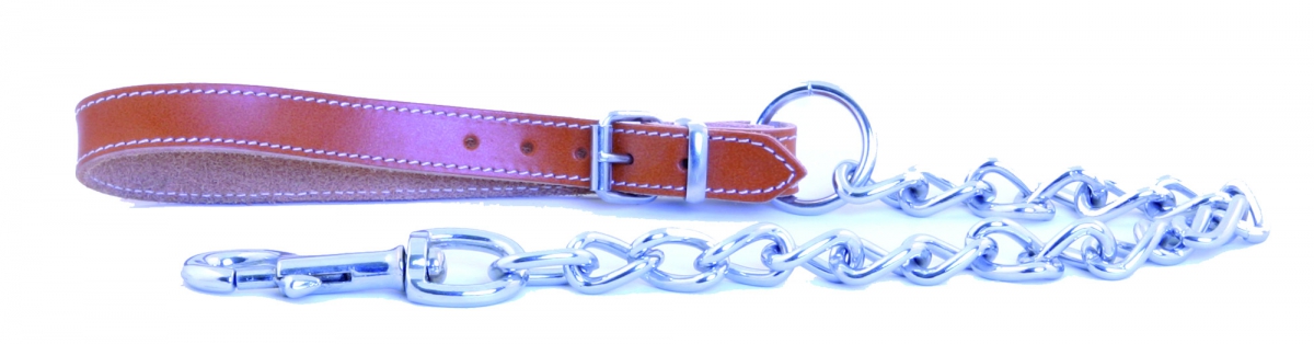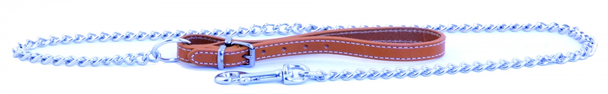 Laisse chaîne avec poignée cuir pour chien - naturel - diam 4mm larg 16mm Long 60cm