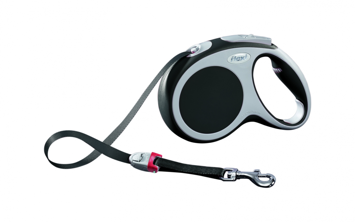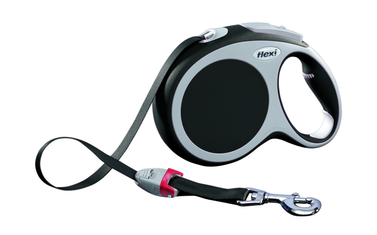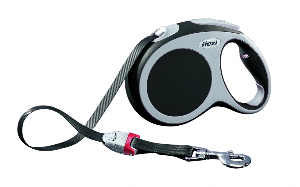 Laisse enrouleur pour chien - Flexi - Vario sangle anthracite - Taille S - Longueur 5m - Pour chien jusqu'à 25kg
