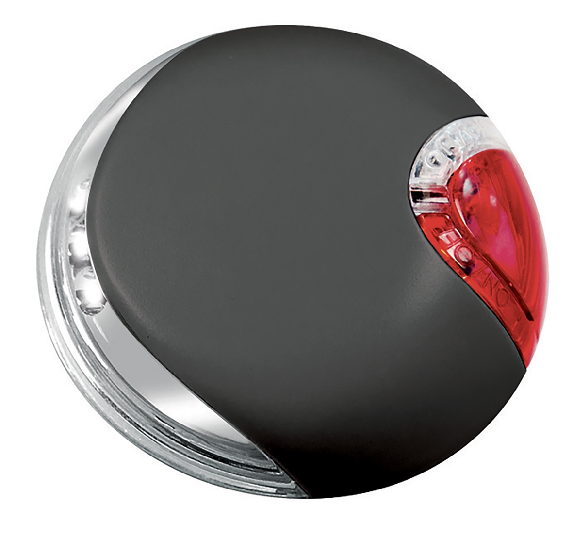 Cette lampe led peut se fixer à droite ou à gauche de la laisse. Les piles sont incluses.