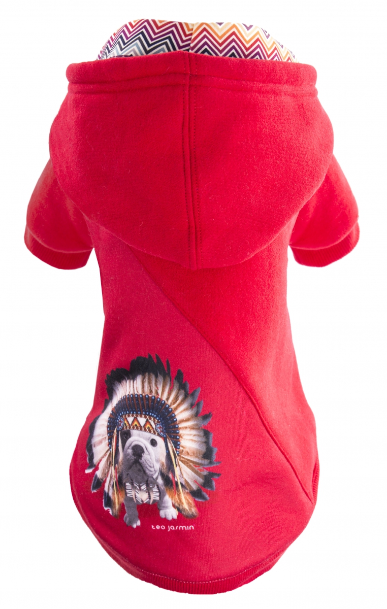 Sweat avec capuche. Téo en impression sérigraphie. Manches pour pattes avant. Ouverture pour le passage de la laisse. Fermeture par pressions. Elastique pour passage de la queue. 65% polyester et 35% coton. Lavable à 30°C. SWEAT BACK LENGTH / LONGUEUR DOS CHEST / TOUR DE POITRAIL Maximum TYPES DE CHIENS (quelques exemples) T20 22CM 32CM Chihuahua T25 25CM 38CM Pinscher nain T30 30CM 46CM Yorkshire, Cocker T35 36CM 60CM Bouledogue français T40 42CM 70CM Bouledogue anglais, Beagle T45 48CM 84CM Labrador