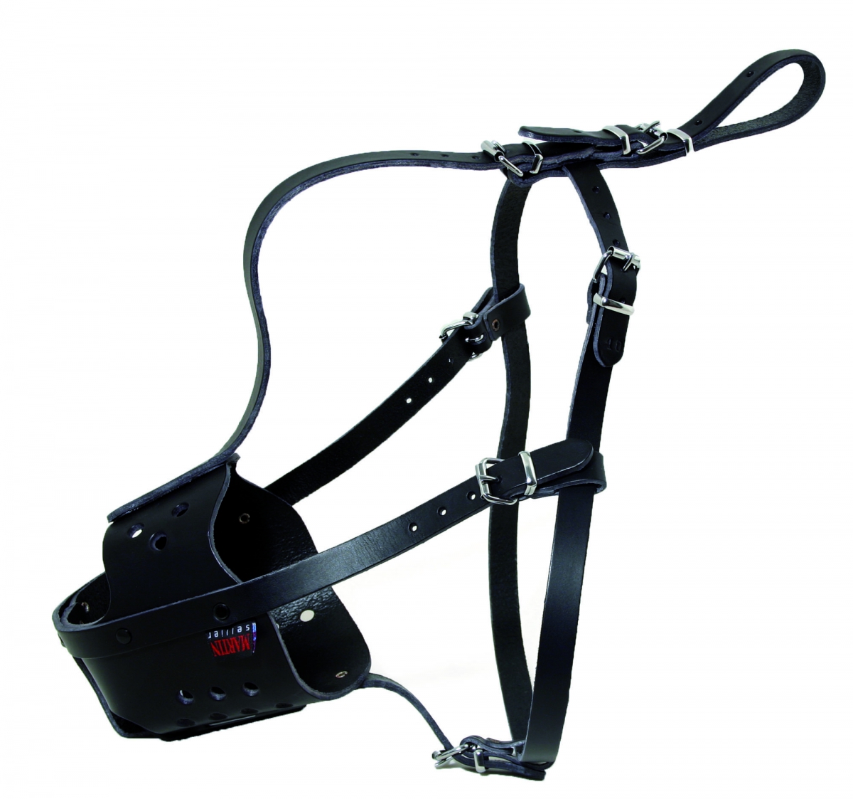 Muselière en cuir avec renfort métal pour chien de police ou d'attaque